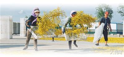 吴忠市红寺堡区周新村村民在晾晒黄花菜。
